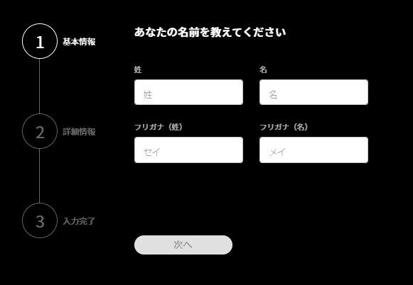 ステップ➄|名前(フリガナ)を入力していきます。