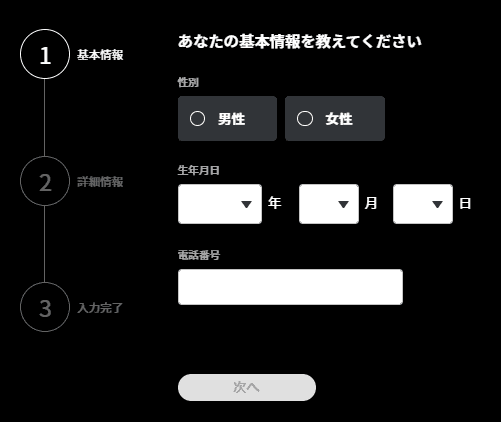 ステップ⑥|生年月日や電話番号を入力します。